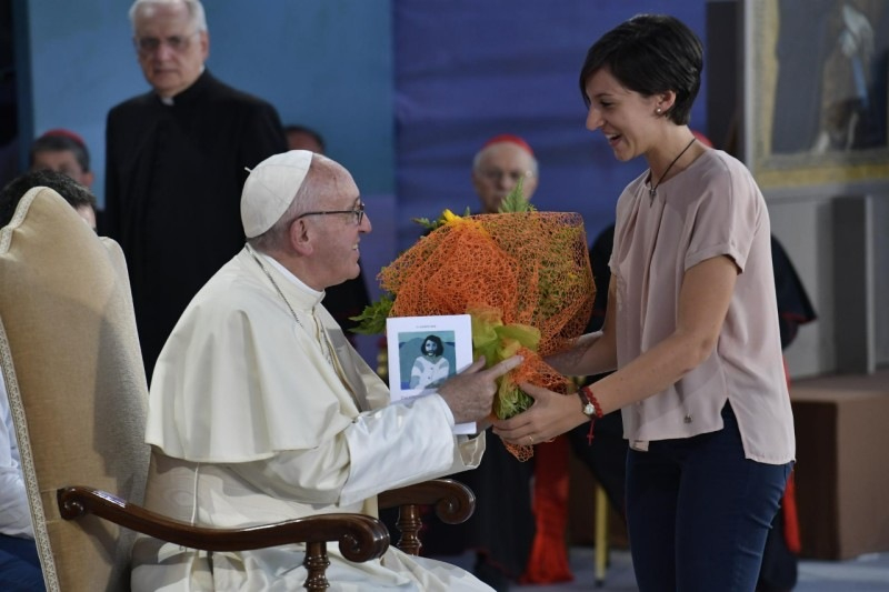 – Kedves Ferenc pápa! Letizia vagyok, huszonhárom éves, és egyetemen tanulok. Szeretnék néhány szót szólni azzal kapcsolatban, hogy milyen álmaink vannak, és hogyan látjuk a jövőt. Amikor meg kellett hoznom azt a fontos döntést, hogy mit fogok csinálni a középiskola befejezése után, féltem elmondani, hogy valójában miről álmodoztam, mivé akarok válni, mert az azt jelentette volna, hogy teljesen feltárom magam a többiek és önmagam előtt.
