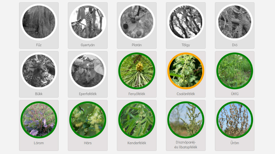 A hivatalos tájékoztatás szerint a mogyoró pollenkoncentrációja országosan közepes, az égeré, valamint a ciprus- és tiszafaféléké jellemzően a közepes-magas tartományban alakulhat, helyenként akár a nagyon magas szintet is elérheti. A juhar, a kőris és a nyár virágporának koncentrációja országosan még alacsony, azonban esetenként elérheti a közepes szintet is. Regisztráltak már a szil, illetve a fűz pollenjéből is néhány szemet, legfeljebb alacsony koncentrációban. A kültéri allergén gombák spóraszáma jellemzően alacsony.